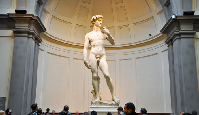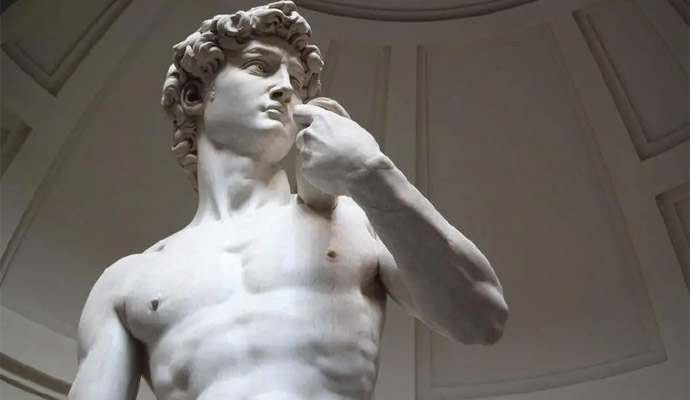 《大衛像》位于佛羅倫薩的圣母百花大教堂廣場上,高達5.17米,是一座巨大的大理石雕像。這座雕像描繪了圣經中的大衛王,他手持彈弓,準備擊敗巨人歌利亞。