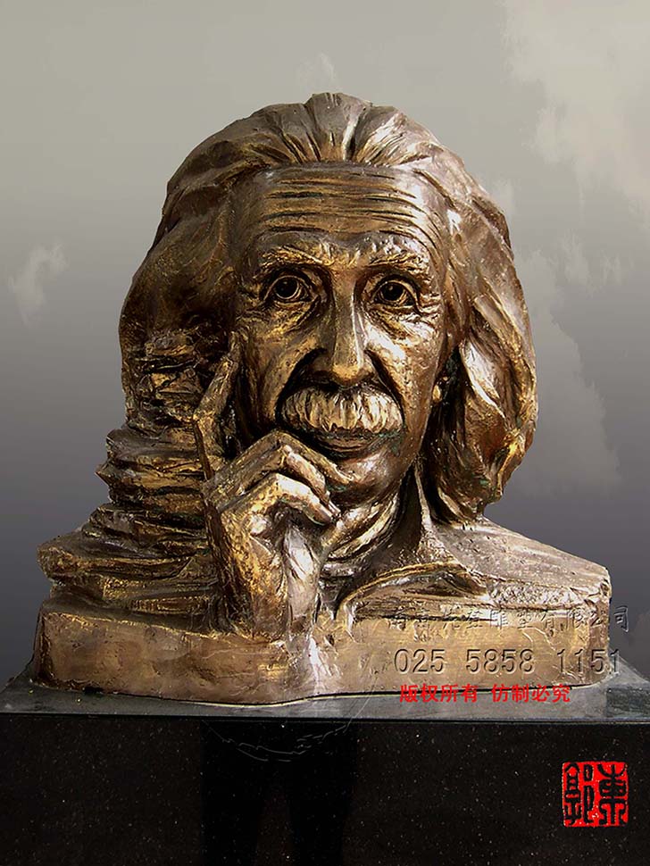 雕塑作品是雕塑家個人內心的情感和表達欲望情感的載體、宣揚精神層面的介質。愛因斯坦的雕塑塑造的是智慧與仁義的結合,他的人生在不斷探索、思考中感染著人類。藝術家索取的就是愛因斯坦散發出的人格魅力,他是世界的公民,他的愛建立在人道主義情懷之上,不屬于哪一個國度,藝術家無需精雕細琢,不是色彩的感覺,是內蘊情感的流露,猶如匕首刺向偽君子的面具,真實的面對生活,從事嚴謹的科學研究。那是什么樣的文化孕育出世紀的偉人,是什么樣的審美心理塑造出的永恒。