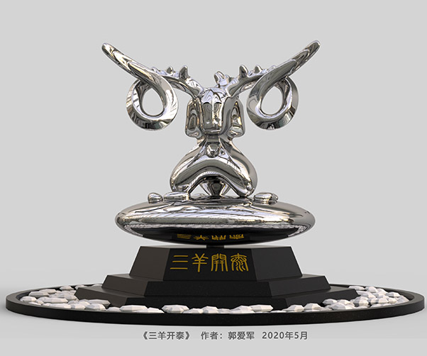 《三陽(yáng)開(kāi)泰》的作者是著名雕塑家東郭,作品誕生于2020年5月。這件雕塑以銀色金屬為主要材質(zhì),經(jīng)過(guò)精細(xì)的加工和打磨,