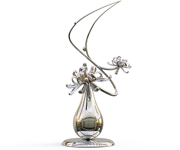 雕塑的造型以菊花為靈感,寓意著堅韌和高潔的精神特質。每一片花瓣都呈現出生動細膩的曲線美,整個雕塑則通過不同體積