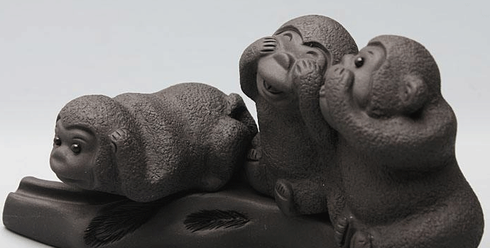 后來衍生出這三只小猴子的形象相傳是這一思想流傳到日本而發展的。在家中擺置一尊三不猴的雕像,更能提醒和告誡自己無論是在工作中還是與人打交道時都要小心翼翼,謹守這三只猴子所代表的"三不"之道———不該聽的不聽,不該說的不說,不該看的不看,從而免招是非,免惹爭端,而能四平八穩,平步青云。
