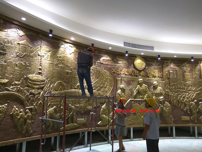 雕塑名稱(chēng):江蘇民防教育體驗(yàn)館大型鑄銅浮雕材 質(zhì):黃銅鑄造